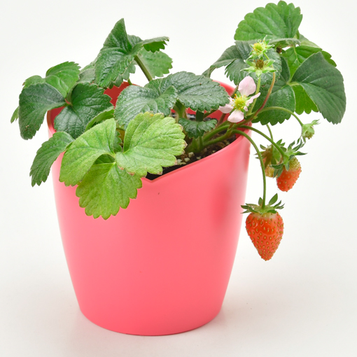 F1の四季なりいちごです。 可愛らしい花が次々に咲き、観賞用として楽しめる期間が長いのが特長です。 果実の大きさは2~3cmと中粒です。