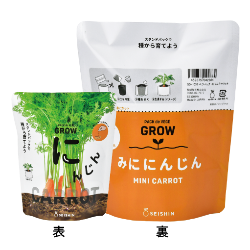 パッケージの表面は、売り場で育てる野菜がひと目でわかるデザインに。裏面にはそれぞれの野菜に合わせたポップなカラーリングを採用し、インテリアとしても楽しめる仕上がりです。