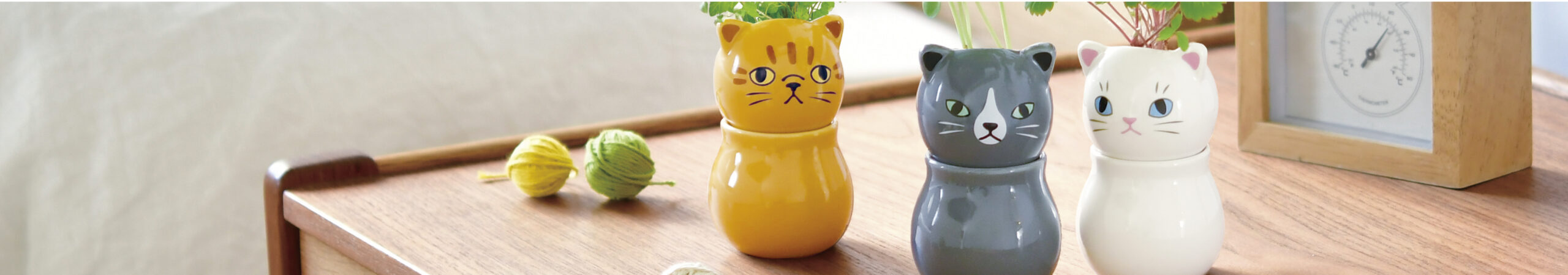 Peropon catsハーブ 動物 猫 素材:陶器 底面給水 膨らむ土