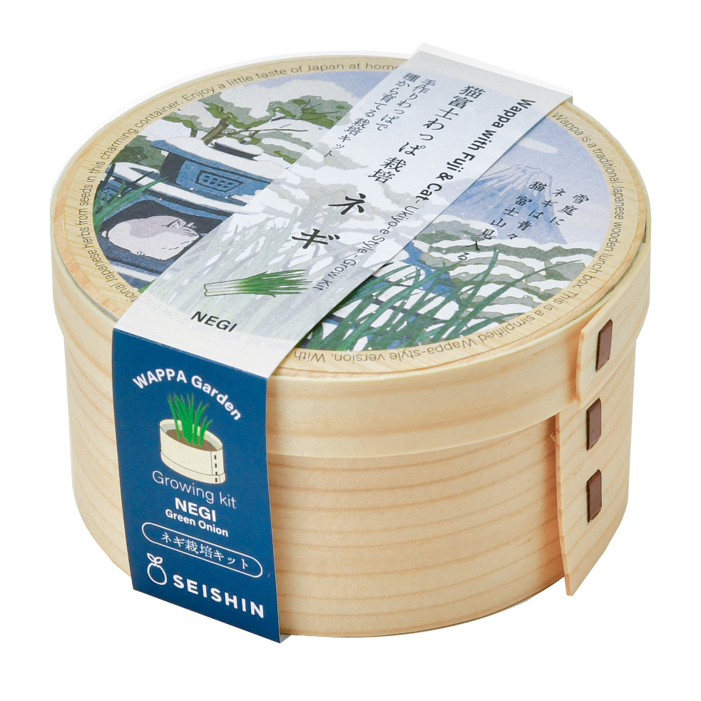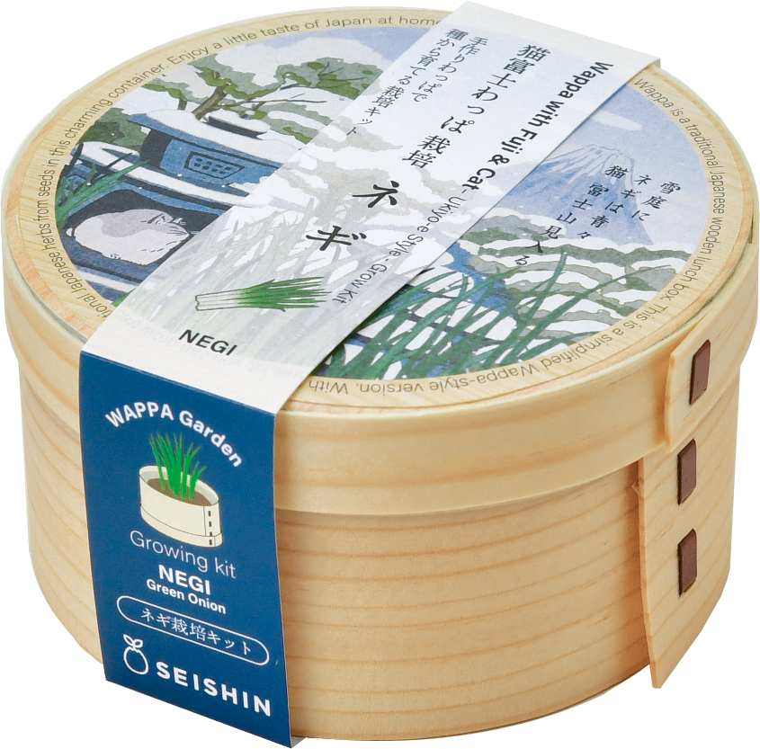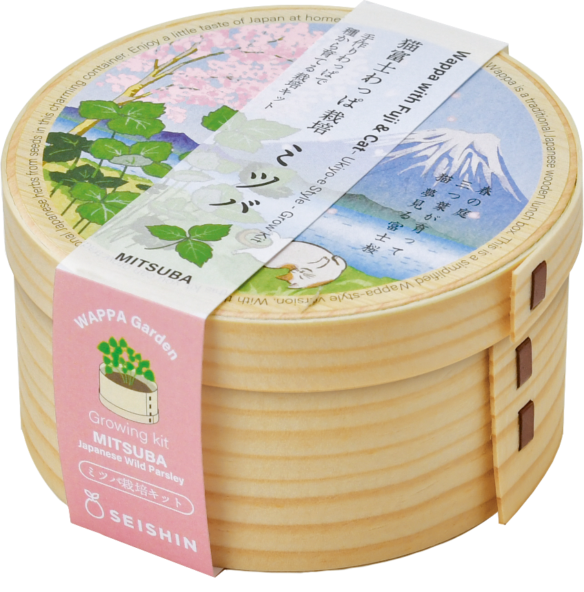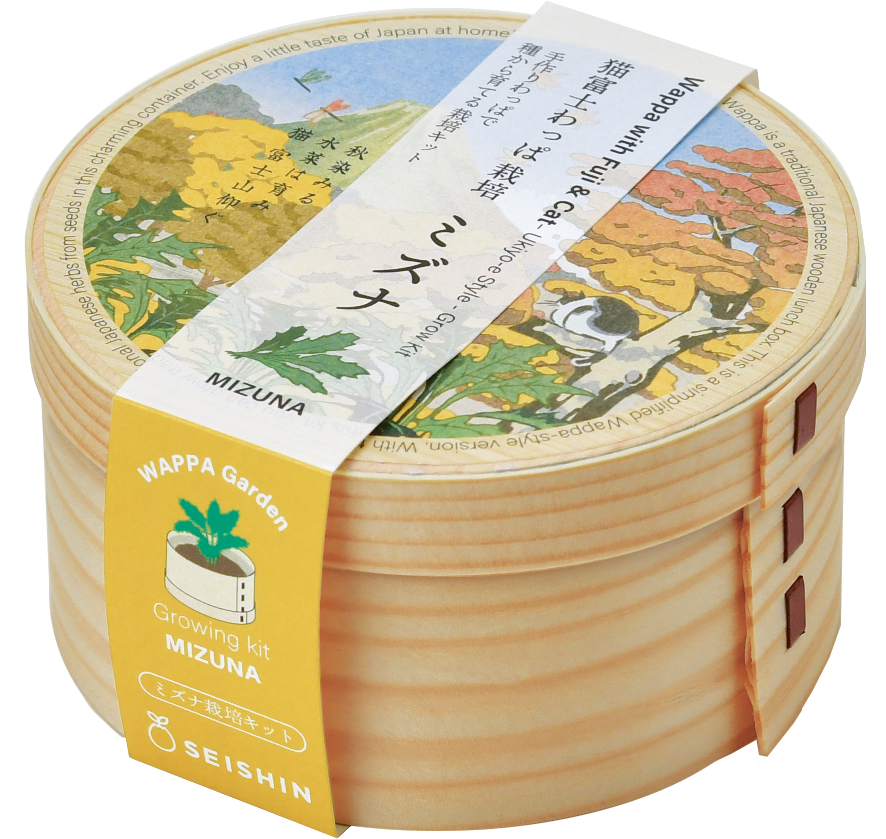 日本製の曲げわっぱで、和食に欠かせない葉菜を育てます。