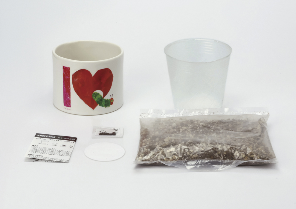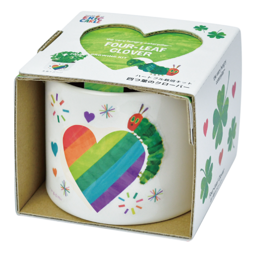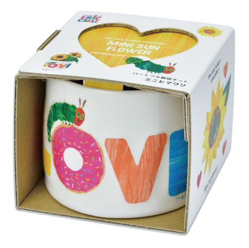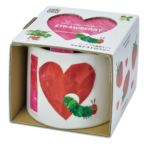 色とりどりのハートに囲まれて、幸せそうなはらぺこあおむしに心あたたまる栽培キット。